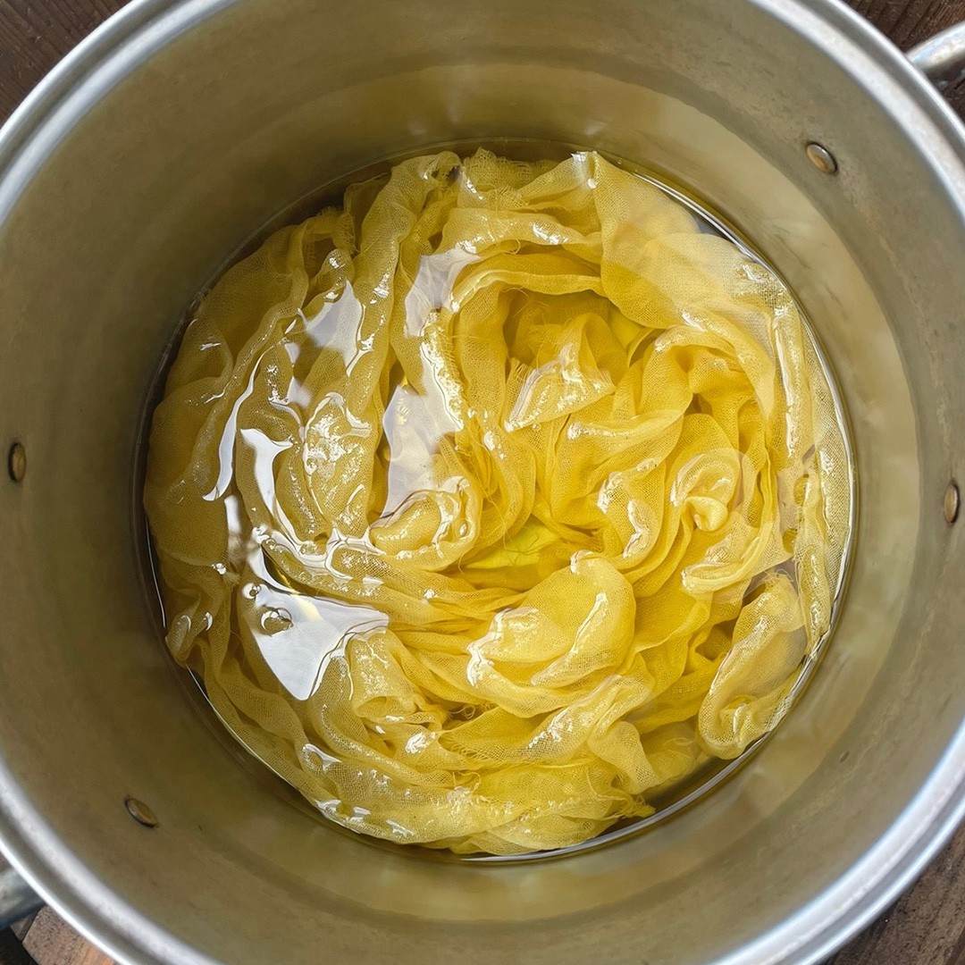 ストールの染色中