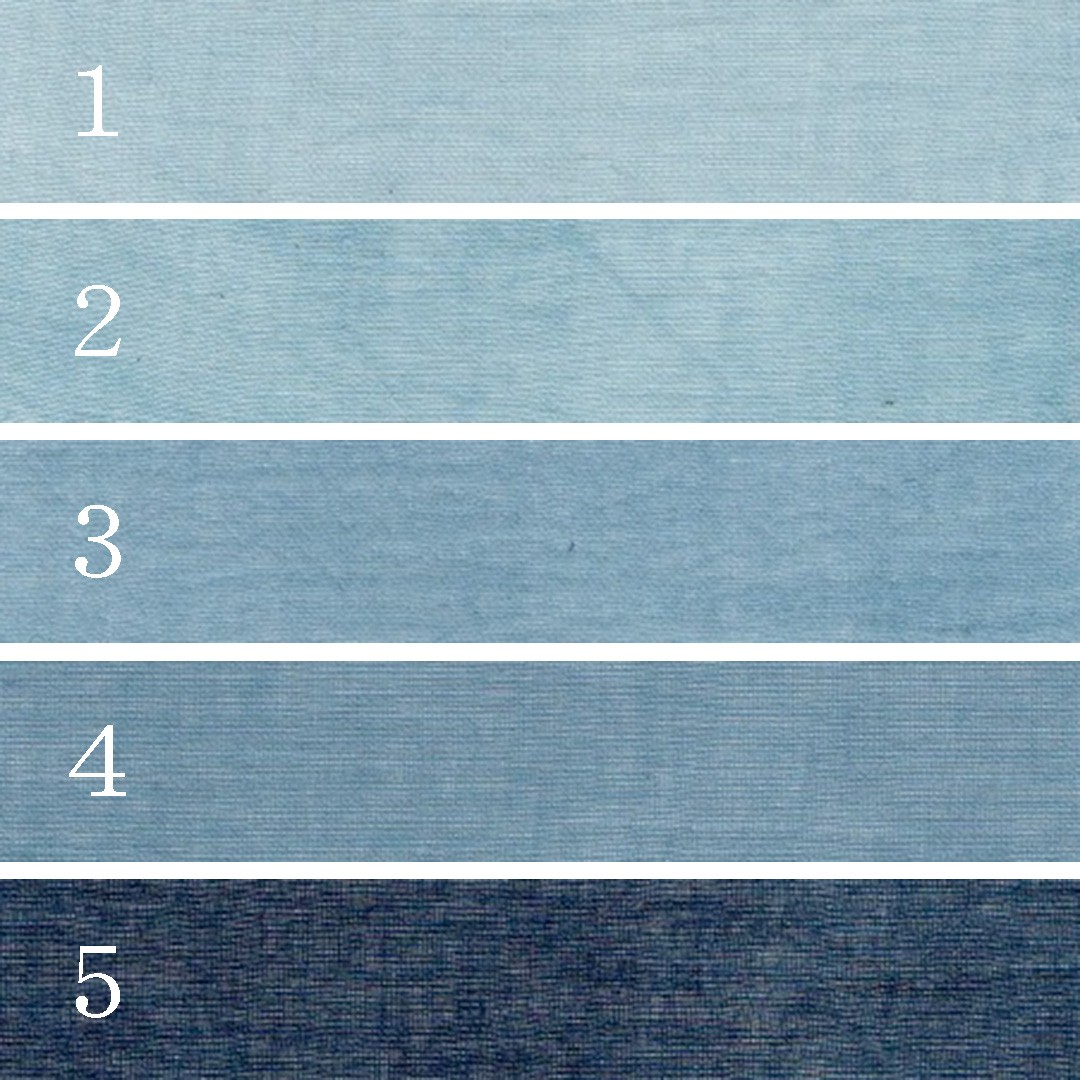 1生葉染め(タデ藍)2生葉染め(琉球藍)3泥藍染(タデ藍)4乾燥葉染(タデ藍)5インド藍染